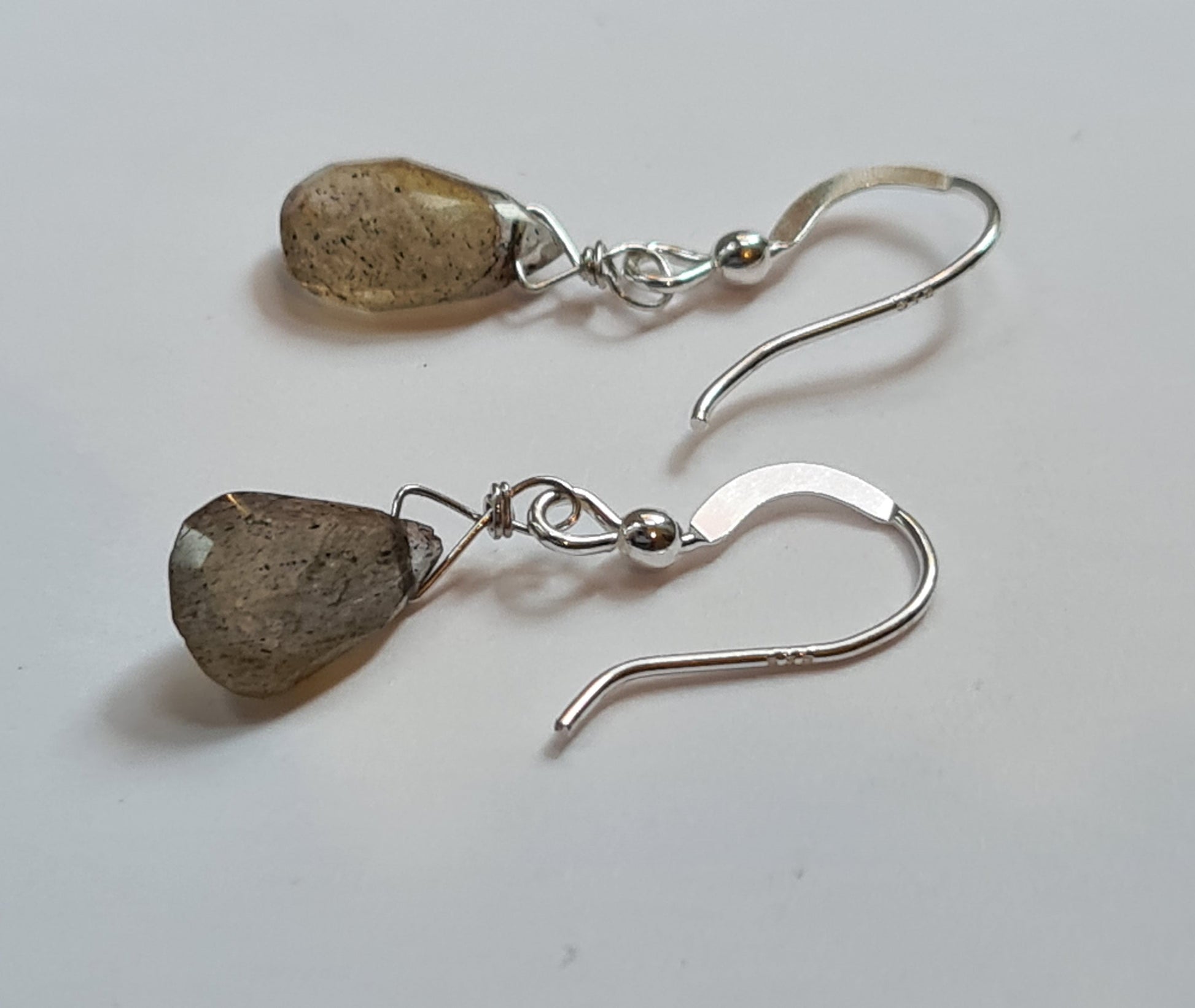Alloy: 925 Sterling Silver, Labradorite briolette 11mm x 8mm.